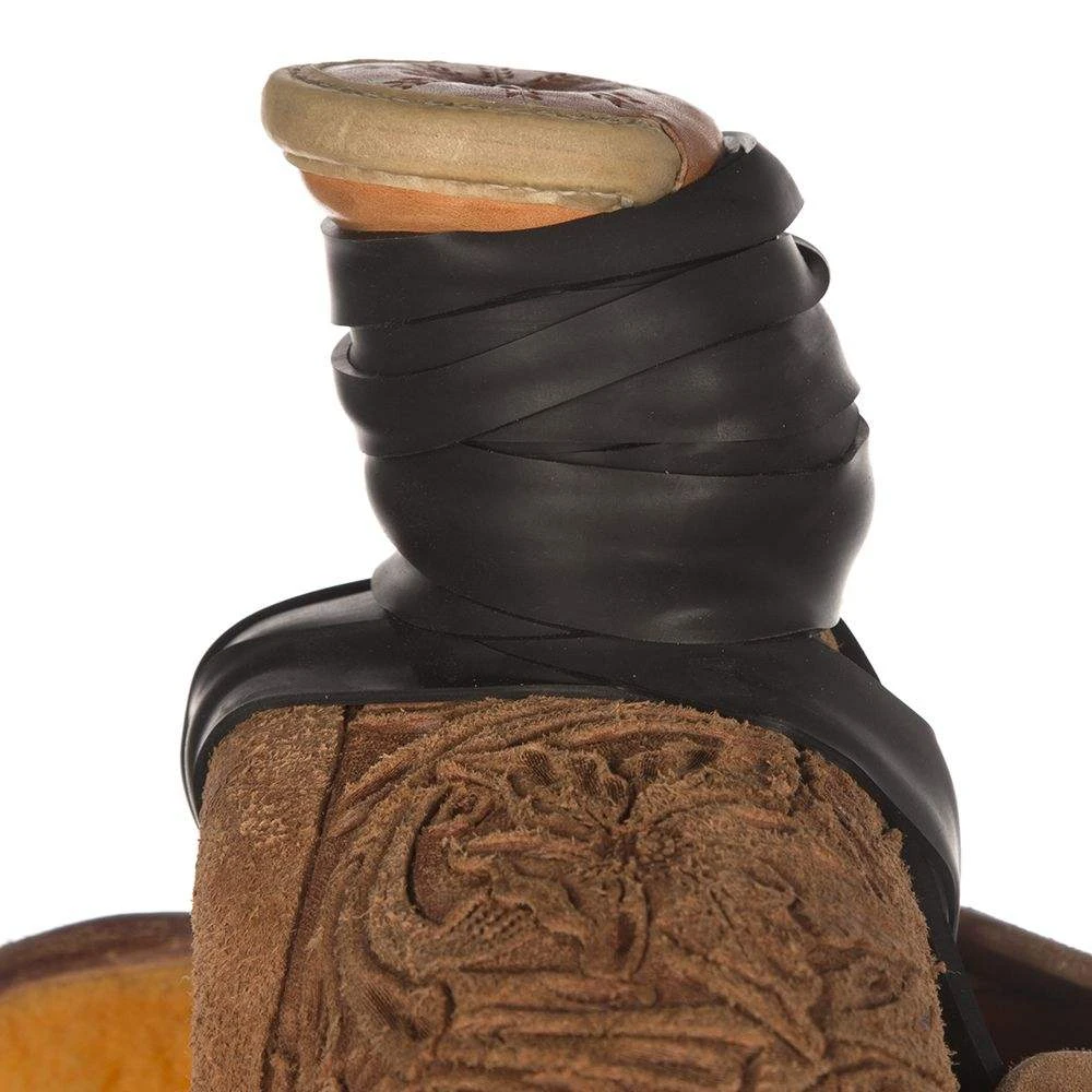 The BetterDally Better Dally Wrap is the future for saddle horn wraps. Better Dally Wrap is a two sided wrap, both sides of the dally wrap can be used. The Better Dally Wraps unique material gives excellent surface tension properties and will NOT burn off and ruin your ropes. This will save you from having to buy ropes that would be ruined by old fashion inner tube tire wraps. When placing your dally wrap and dally strips on your horn, be sure to stretch the material tight. Putting the material on loosely will cause the material to roll. When you put the BetterDally wrap on your horn for the first time, be sure to use a new rope. Old ropes that have built up debris from old dally wraps will cause your ropes to slip and the dally wrap to break down faster. We do not assume to gurantee the longevity of the BetterDally wrap because of the vast variety of ropers and uncontrollable environments that the dally wrap can be used in/for. BETTERDW-3
