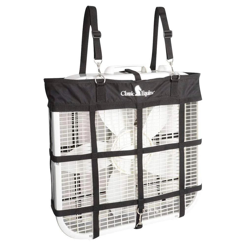 The Classic Equine Fan Bag is your new travel companion! Secures a standards 20″x20″ box fan to the stall. Sturdy nylon webbing resists horseplay. Lightweight and portable. Space saving design.