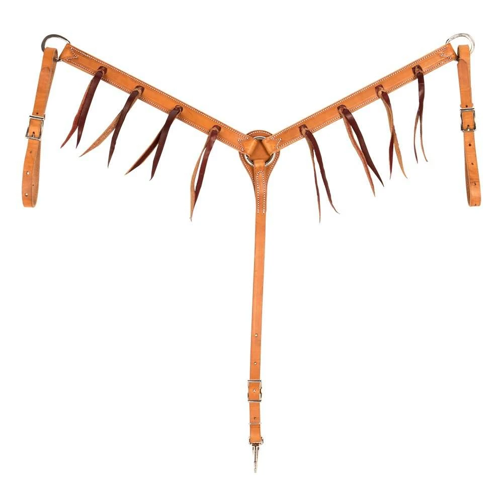 This is a beautiful harness leather breast collar with latigo strings. The breast collar is 1-1/4 inch.