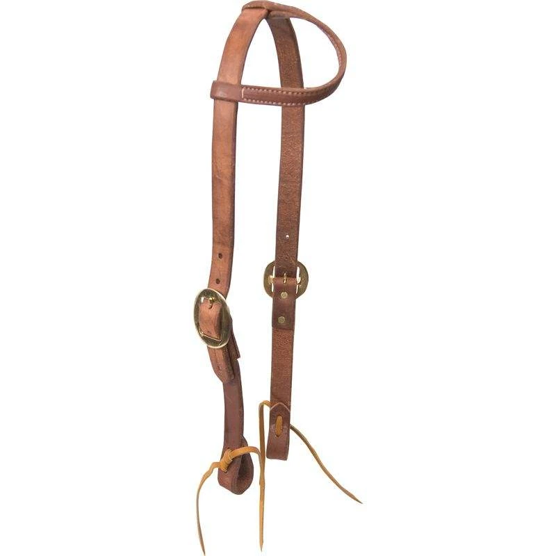Our toughest headstalls, great for colt-starting, are these 1″ wide models. They carry a snaffle bit better than any other style headstall because of the wide 1″ wide end where the bit attaches. For the same reason they won’t fit most curb bits without cutting down the end so it fits through the ring on your bit.