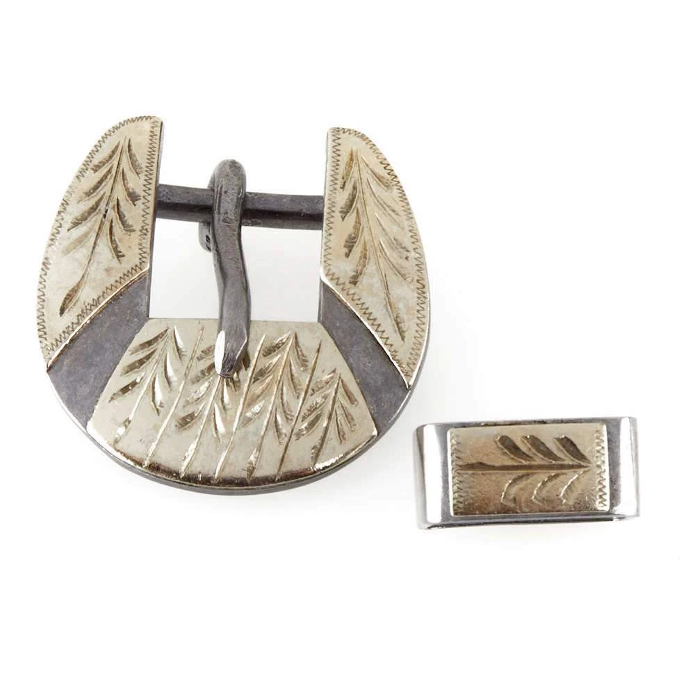 ย ย This 3/4 Inch CowPuncher Floral Cart Buckle is made of aluminum with German silver engraved flowers, and copper buds. This buckle may rust naturally with time.