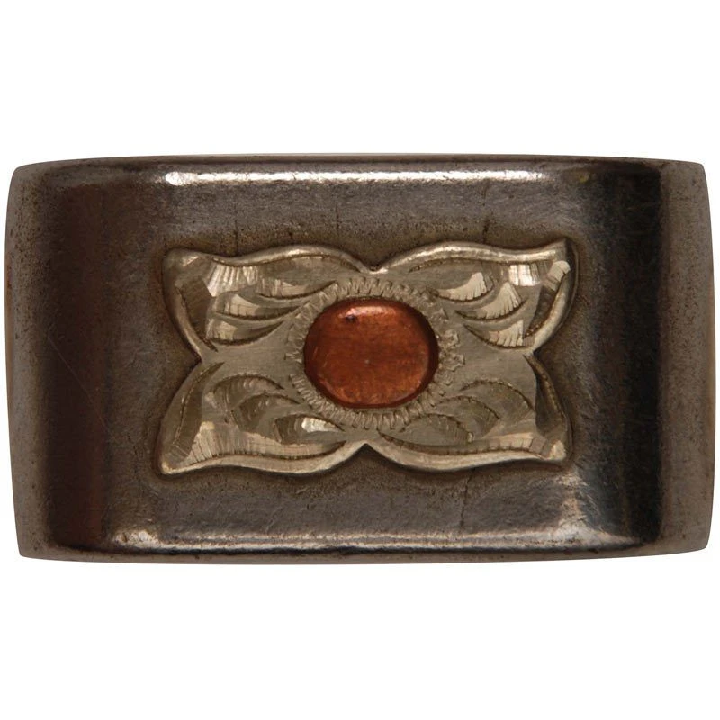 Silver mounted horn knot with an engraved flower and copper bud.