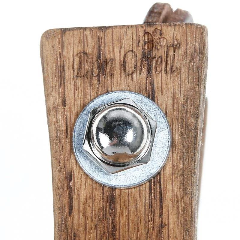 The Don Orrell Offset Stirrup is a favorite among many in the performance horse industry, the offset balance on this stirrup assists in keeping your heels down in those hard stops and slides. This stirrup style is available in 3″ tread width. The inside width is 5.25″. As with all of our stirrups, each layer of laminate is carefully selected so that each stirrup pair matches in wood grain pattern and color. The alternating 7 layers of laminate display two differing types of wood. This gives our stirrups a very distinctive style and added strength. The attention to detail continues with the the stained tread leathers, rounded over edges, and a very durable, exterior finish that will highlight the beautiful wood grains and patterns that make each pair unique.