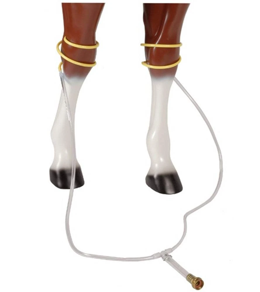 Unique and very efficient, Leg Soakers with new unbreakable coils are a state of the art irrigation system which releases an even distribution of cool water on the entire diameter of each leg. The coils are self-releasing so there is no fear of your horse getting tangled. The design is so flexible that the hose can be placed overhead or on the ground in any desired position.