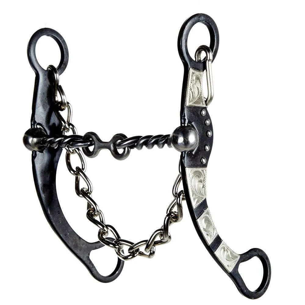 This 5 inch twisted wire dogbone bit features a Mounted German Silver design on the 7-1/2in cheeks.