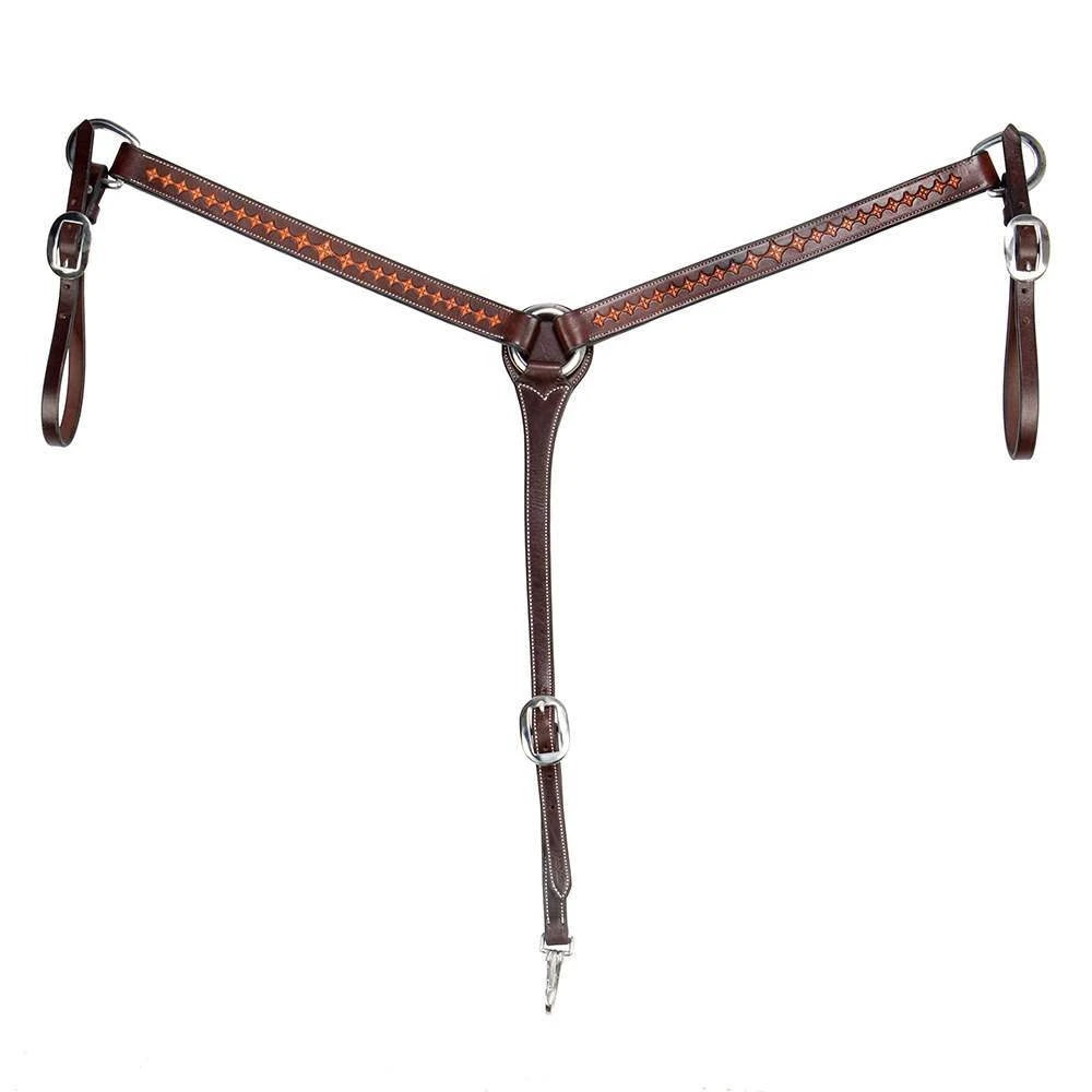 Amish made two toned Diamond tooled breast collar. Hand rubbed edges, high quality leather and stainless hardware.