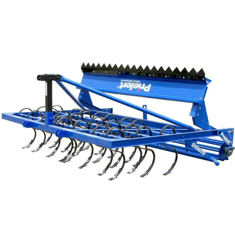 Priefert’s ArenaMaster eliminates expensive hydraulics and allows operators to break packed ground, pulverize clumps of dirt, and leave consistent footing; often in a single pass. Offset rows of S-tines provide multiple points for ground breaking efficiency and to minimize large clods. Penetration depth can be regulated by changing the tractor’s top link, lift control height, and/or the ArenaMaster’s leveling bar adjustment. The leveling bar also aids in the breaking clods, leveling high spots, and filling in holes. The trailing “Clump Buster” further pulverizes dirt clods and packs the sub-surface for consistent footing; it also fluffs the top layer of dirt to ensure a smooth surface, suitable for any practice or competitve arena.