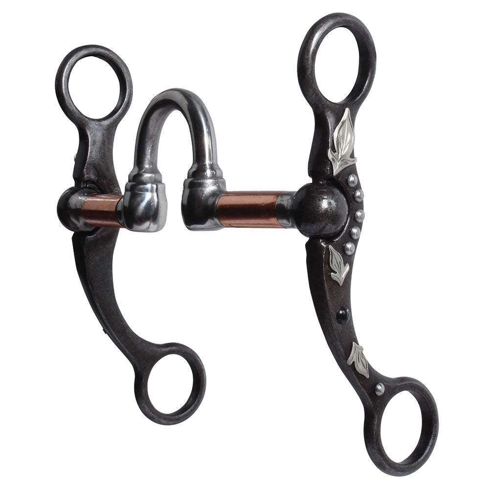 This weighted cheek allows for more control and added poll pressure while maintaining clean lateral movement. The cheek pieces features a decorative a silver and colored stone design. Correction mouthpiece.