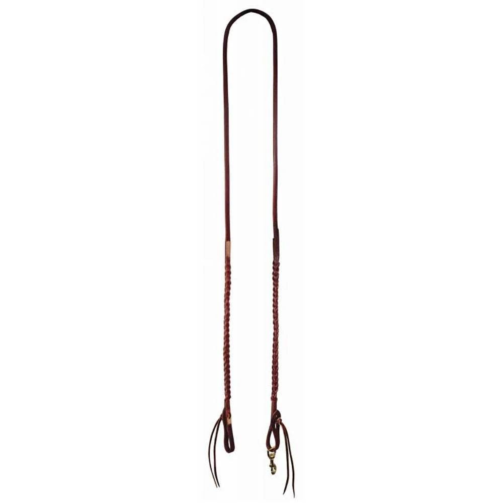These Professional’s Choice roping reins are constructed of 5/8in ranch heavy oiled harness leather and feature a unique “bleeding heart” double plaited front. Feature solid brass snaps. 7’9″ to 8′.