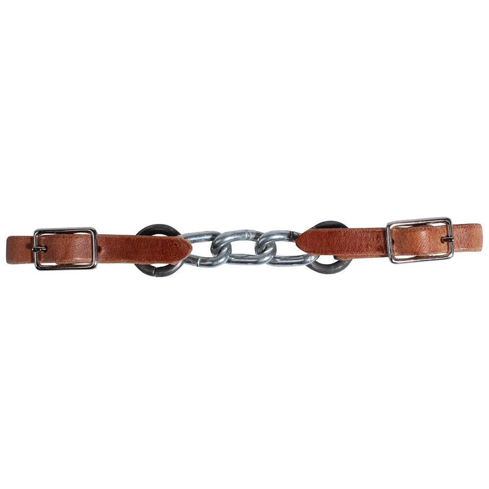 Heavy 3 link curb strap with either burgundy latigo or harness leather.