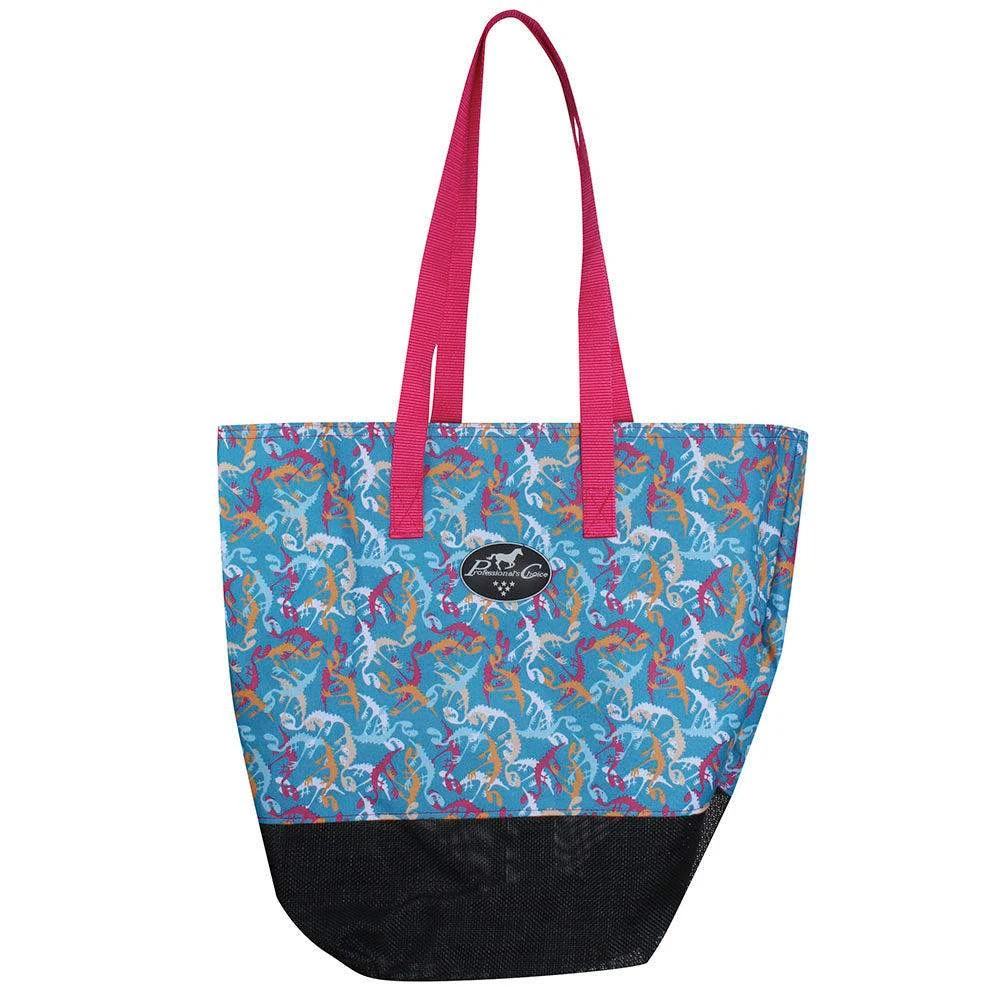 ย Roomy tote bag with mesh bottom for debris to fall through. Perfect for everyday use to carry brushes, grooming supplies, and splint boots!ย This is a very popular tote bag that is versatile and fashionable!ย PC-TOTE-21