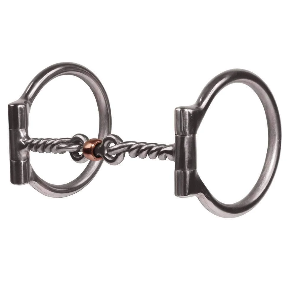ย Made of sweet iron with copper inlays, keep the horse’s mouth soft and moist. This bit works well for green or sensitive horses. 3in rings and 5-1/2in mouth. This bit will rust when exposed to moisture. This creates a sweet taste in the horse’s mouth and promotes salivation.