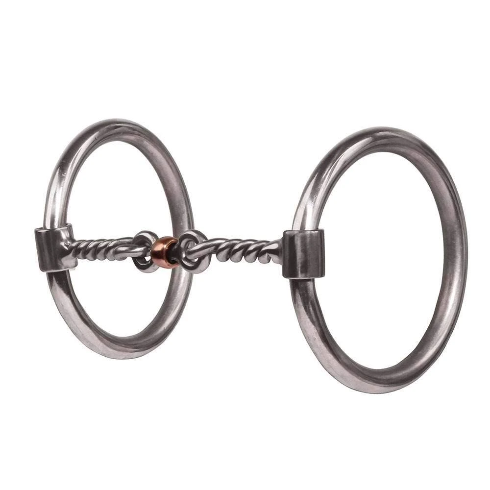 ย Suitable for any horse, made of sweet iron with copper inlays to help keep the horse’s mouth soft and moist. 3in rings and 5-1/4in mouth. This bit will rust when exposed to moisture. This created a sweet taste in the horse’s mouth and promotes salivation.