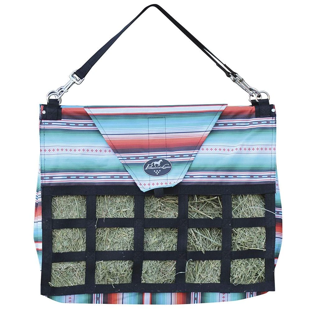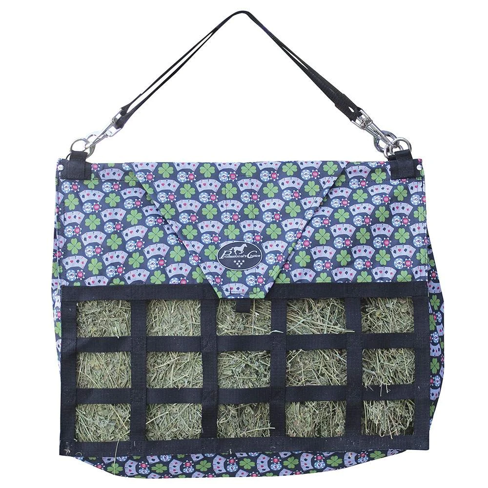 ย This medium feed hay bag is designed for denser hays like alfalfa. It features the same benefits as the slow feed hay bag, encouraging horses to eat slowly to allow for proper digestion and keeps them busy when tied to the trailer. This durable hay bag has a top flap closure, loads from the top, and is easily hung with detachable straps that can adjust to almost any height. 19in tall x 24in wide; 10×24 wide opening