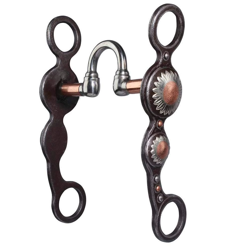 This beautiful new Sunflower Collection from Professional’s Choice features a stunning shank with silver and copper sunflowers. The correction mouthpiece on this bit consists of 4 moving parts to allow the horse to respond to subtle rein pressure, reducing heavy rein handling. Copper bars keep the horse’s mouth moist.