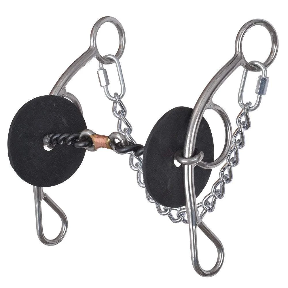 - The twisted wire bars with the copper dogbone keep the horse’s attention without being too severe.