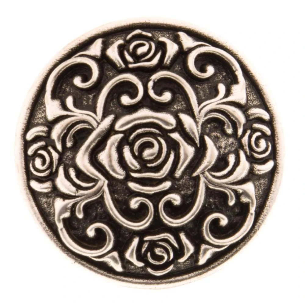 Dress up any wild rag or scarf with this classy rose scroll concho. Measures 1 1/2″.