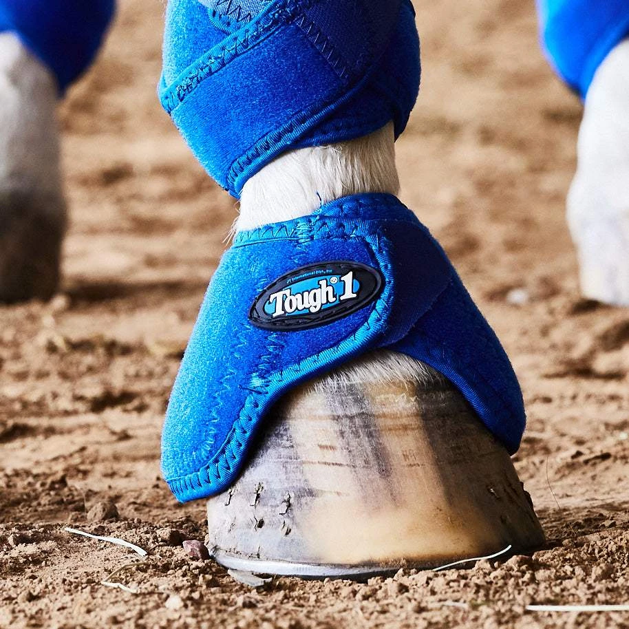 Tough1 Extreme Vented No Turn Bell Boots keep your horse protected when overreaching, preventing unsoundness before it happens! Double layer of air-flow perforated neoprene. Wide single fastener with tab provides large surface area for secure closure for easy on/off. 64-15100