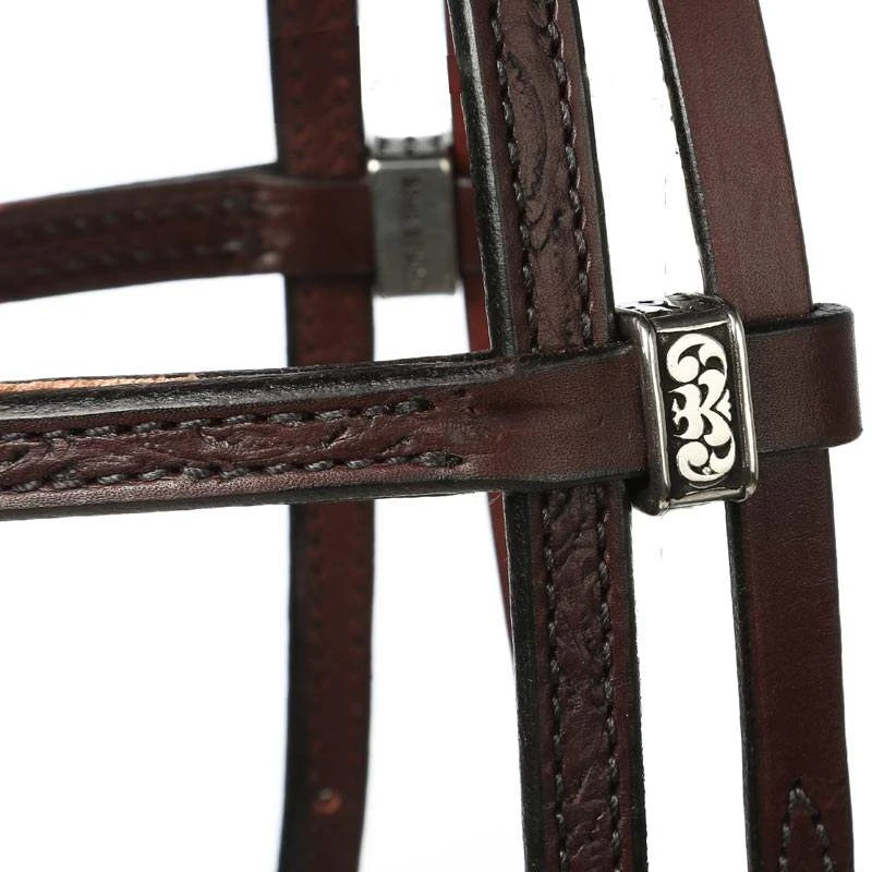 Tucker tooled Horizon tack is made of exceptional English bridle leather which is known for the luxurious softness, moisture repellent, and longevity. Stainless steel hardware is combined with black engraved accent buckles, and conchos at bit ends. This tack piece will beautifully accent your horse. The horizon tack collection was designed with comfort and convenience in mind.