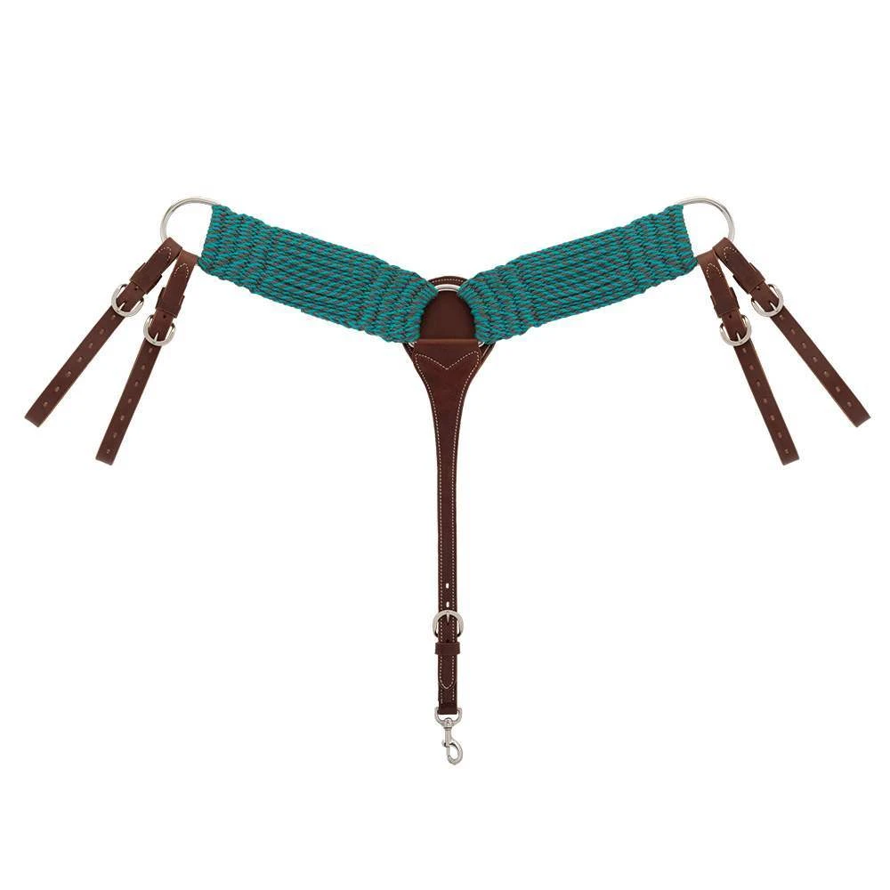 Weaver Leather EcoLuxe Bamboo Roper Breast Collar is made from organic bamboo, the fastest growing plant on the planet that’s a sustainable, renewable resource you can feel good about having next to your horse. Thriving on very little water and without the use of pesticides or fertilizers, bamboo is a natural and biodegradable fiber with a small environmental footprint. The benefits don’t stop there though. Bamboo is also moisture-wicking, antibacterial, breathable, hypoallergenic and resistant to UV rays, making it the ideal fiber for equine gear.ย 40040-21